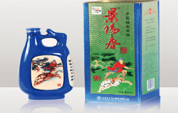 這同樣是一款濃香型白酒的純糧酒,釀酒廠創建自上個世紀70年代。這酒反面是一幅武松打虎的繪畫,相對應的地區恰好是景陽岡,另外還喻意山東人豪爽的喝酒性格。