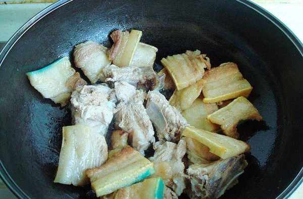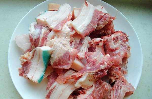 做法:1、把豬肉洗凈切成大塊,帶皮帶骨一起比較好