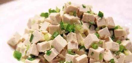 1. 豆腐放在盤中,入蒸鍋,大火蒸兩分鐘,取出,放涼,切成小丁。