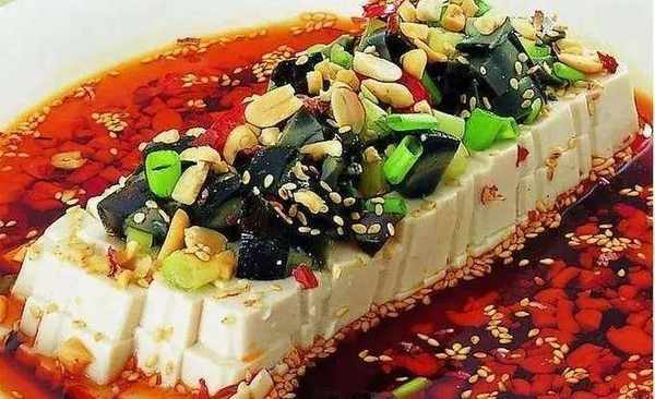 2.皮蛋去皮,切小丁倒在豆腐上。