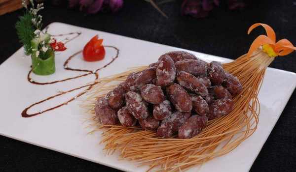 我們在炸制帶皮的堅果是需要裹上一層淀粉(如花生),如果沒有帶皮的幹果(如腰豆),可以直接放入鍋中炸制即可。