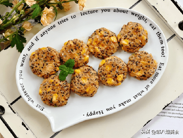 將三色藜麥洗兩次,然後用水浸泡一個小時。玉米去皮並清洗幹凈。雞身肉洗凈,切成小塊,放入料理機打成泥。