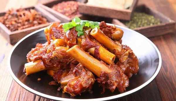 2.將幹花椒、幹麻椒、地椒葉裝入料包中,洗幹凈,下入到鍋中,鍋中再加入幹辣椒、蔥薑、麻辣牛油火鍋底料、食鹽少許、雞精、秦椒面,蓋上鍋蓋小火慢燉90分鐘,收濃湯汁,這樣一款完全沒有膻味的香辣羊棒骨就制作完成瞭。