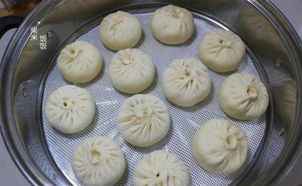 8,擺放在蒸屜上,蓋上蓋子,二次醒發半個小時左右。待包子體積明顯變大開火蒸。
