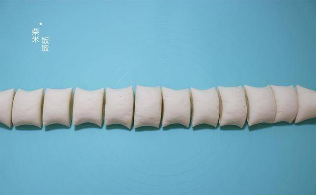 6,面團發好瞭,移到揉面墊上,揉搓排氣。然後搓成長條,再分成12個小劑子。