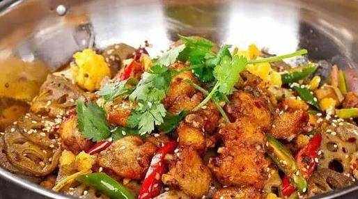 這個時候可以將鍋燒到7成熱的時候,倒入適量食油,放入雞肉,幹水分撈出晾幹備用。另起一口鍋放入少量食油,燒到5分熱的時候把花椒八角薑蒜蔥,白段幹紅辣椒倒入鍋中,小火煸炒出香味,緊接著倒入炸好的雞塊,淋入調好的調味汁,用大火快速翻炒。最後幹鍋在火上加熱一下,放入少量食油和蓮藕以及少量食鹽炒到斷生的時候,把陳浩的計劃倒在幹鍋上,撒上白芝麻,搭配上酒精爐,一同上桌就可以瞭。