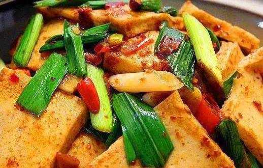 第3款幹鍋千頁豆腐。需要的食材分別為千葉,豆腐一包,青蒜苗,洋蔥半個,豆瓣醬,紅辣椒,適量蔥,薑,蒜適量,白砂糖,生抽,蠔油,食鹽,食用油等。制作方法:首先把切豆腐切成片,蒜苗切段,洋蔥切絲,紅辣椒切段蔥,薑蒜切末備用。接著把鍋燒到7成熱的時候,倒入食油,把千頁豆腐放到鍋內煎到兩面金黃盛盤即可。另外把鍋燒熱,放入少量食油,把切好的洋蔥絲倒進去加入少量食鹽炒到斷生,取出來裝盤。最後,在鍋裡倒入適量食油燒熱放入豆瓣醬,辣椒粉炒出紅油,再加紅辣椒,蔥,薑,蒜末,放入鍋中小火爆香,然後把建好的千頁豆腐都放到鍋內翻炒均勻,放入適量的食鹽白糖生抽蠔油,翻炒均勻之後把蒜苗放進去接著翻炒斷生,即可關火裝盤。