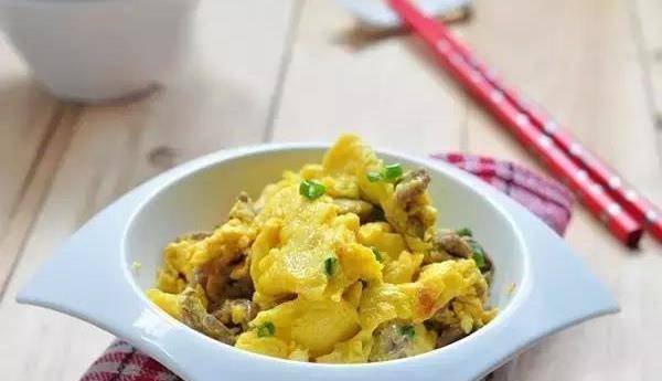 材料:牛肉150克、雞蛋5個、食鹽1小匙、小蔥10克、白胡椒1小匙、植物油3大匙、嫩肉粉1小匙。