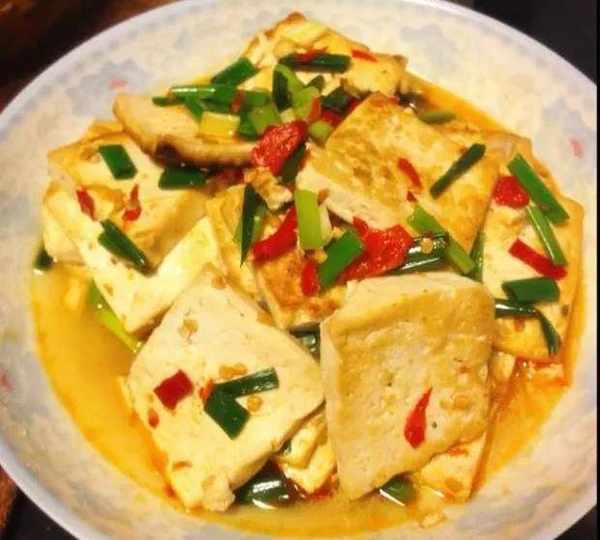 3、煎第一面時不要隨意翻動,可用鍋鏟慢慢從豆腐底面翻起查看,煎至一面金黃再煎另一面,翻轉時輕而快。