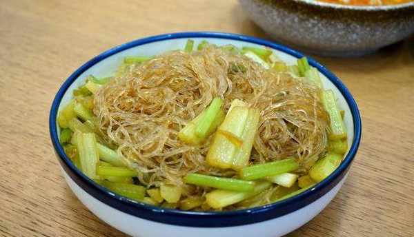 芹菜炒粉絲也算是創意瞭,兩個不是很搭,就是突然想吃粉絲瞭。先炒芹菜,再放鹽、醬油,少許水,將泡軟的粉絲入鍋中吸味兒上色,出鍋。