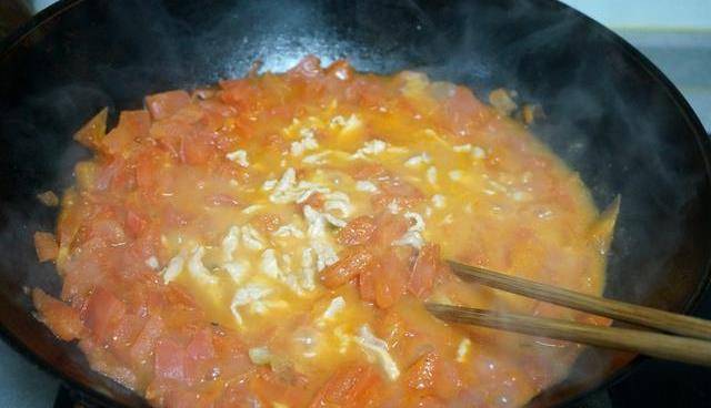 炒鍋倒油,將蔥花煸香,倒入西紅柿翻炒,倒入一大碗熱水,蓋蓋煮開,直到西紅柿變濃湯,把肉片夾入湯中,迅速打散,再重新煮沸,撒鹽,出鍋。