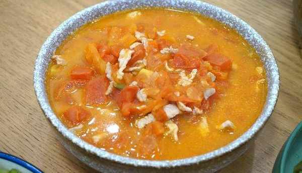 這一大碗西紅柿肉片湯,營養又開胃,既當湯又當菜,肉片非常嫩。