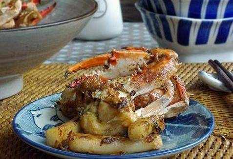 6.將蟹殼也一起放入小火慢慢翻炒到蟹殼變色香味溢出即可.