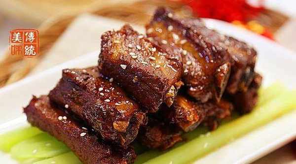 排骨600克、米酒10毫升、香醋20毫升、冰糖30毫升、生抽40毫升、水50毫升、蒜適量、薑適量。