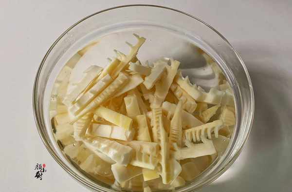 步驟五:焯好的春筍倒入清水中過一下涼水,這樣春筍吃起來口感更加的清脆。