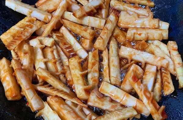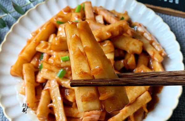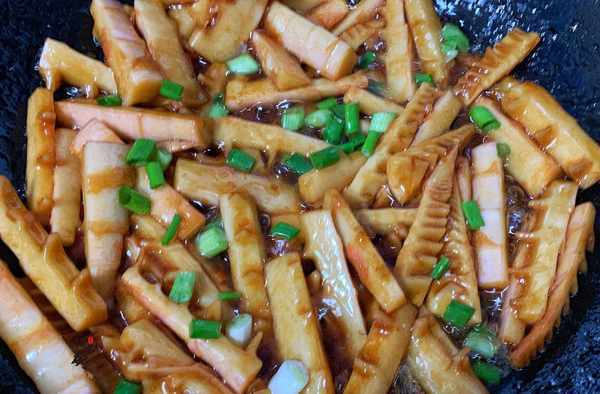 食材:春筍500克,蔥兩棵,海鮮醬一勺,老抽一勺,淀粉水半碗(淀粉加清水),食用油適量。
