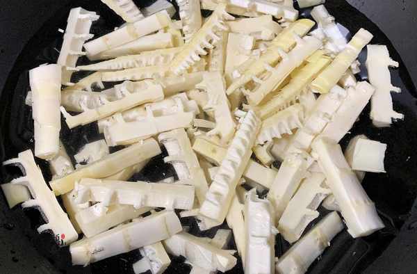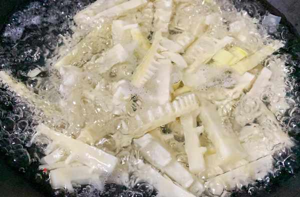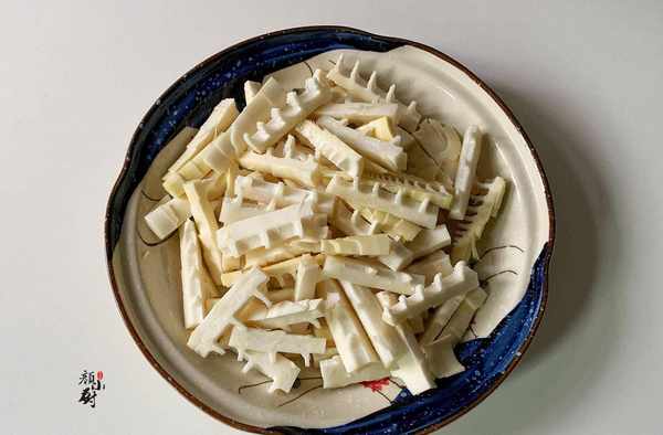 步驟一:春筍剝去外皮用清水清洗幹凈,然後切成小長條備用。