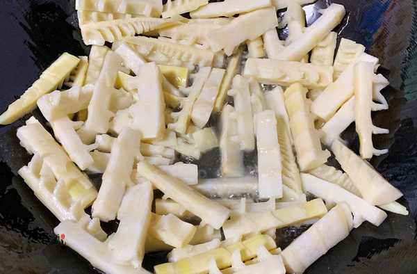 步驟六:炒鍋中倒入適量食用油燒熱,倒入春筍翻炒一兩分鐘。