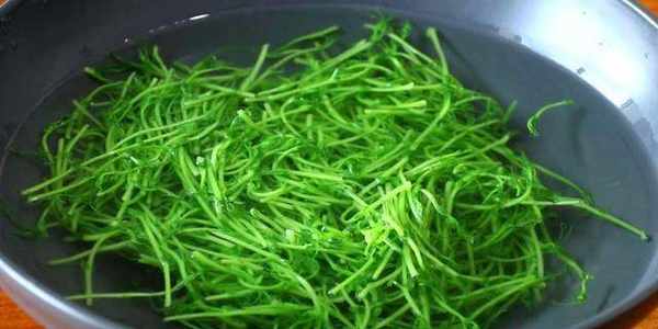 2、豌豆苗用清水反復沖洗幾遍,瀝幹水分。