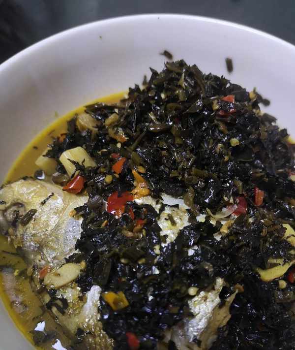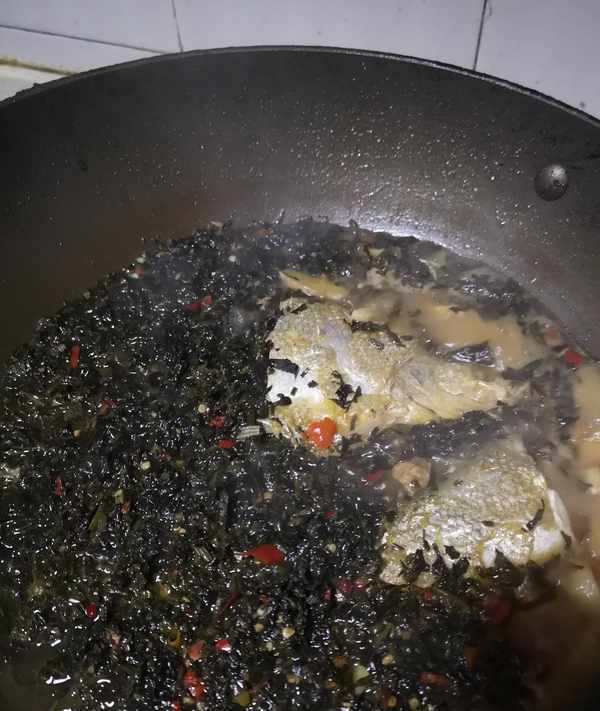 昨天晚上哥哥到河裡釣瞭幾條一斤多左右的翹嘴魚,一大早給我們拿瞭一條過來。對於這種河裡的野生魚我們一般是來者不拒的。拿出壇子裡珍藏多年醃制的紅薯葉,準備配上魚一起燉著吃,味道十分的鮮美。