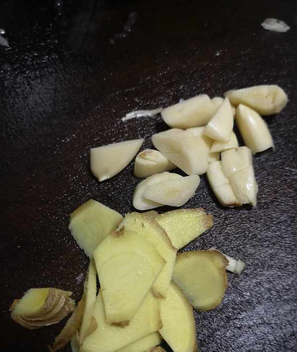 做菜第一步:把翹嘴魚清洗幹凈,從中間切斷,這樣在鍋裡煎的時候更方便。大蒜切片,生薑切片。