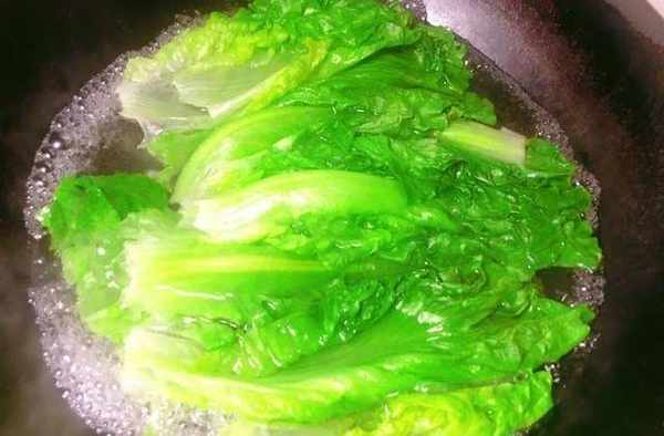第二步:把鍋裡的水燒開後,倒入全部生菜,焯熟後撈出擺盤上