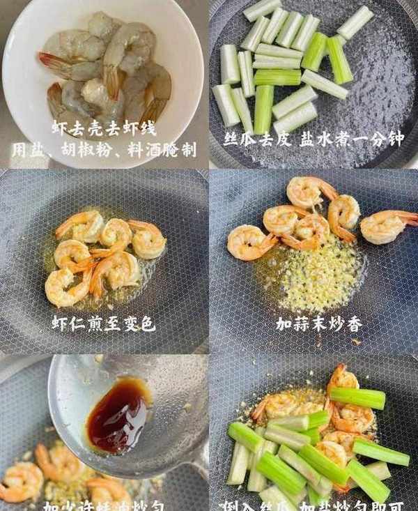 主要食材:蒜末,絲瓜,蝦仁,鹽,胡椒粉,蠔油,料酒,蝦仁一定要買生猛的大蝦,最好親自去買,買回來去掉蝦殼蝦線,越是新鮮的食材,做出來味道越是不需要各種調味料,絲瓜切成方形小塊容易煮熟。