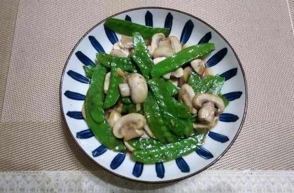 主要食材:荷蘭豆、口蘑、蒜末、料酒、蠔油