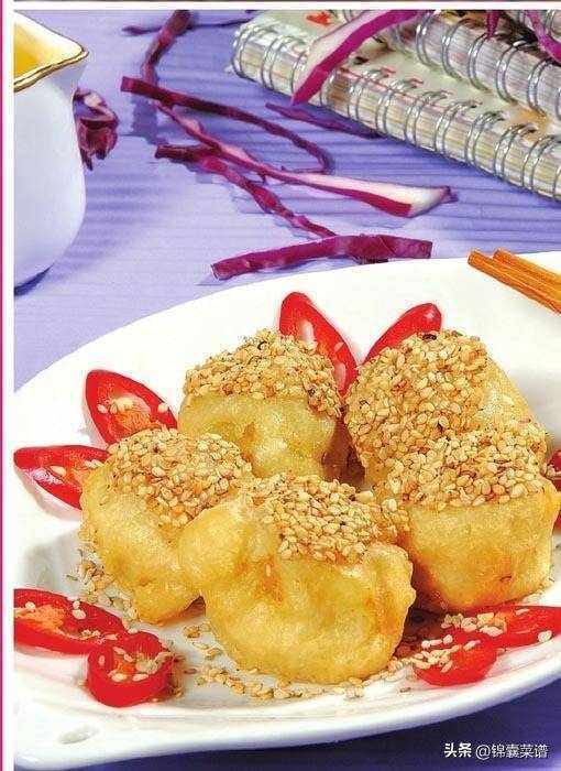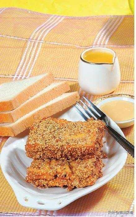 原料:芋頭 300 克,咸面包 300 克,芝麻仁 100 克,雞蛋 2 個。