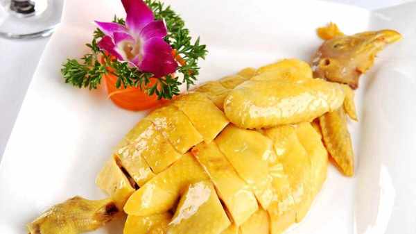 4、關火,把雞從鍋中取出,放入冰水浸泡15分鐘,撈出控水。