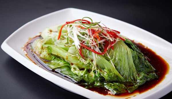 3、加入蠔油,鹽調味,盛出裝盤,點綴蔥絲和紅椒絲。