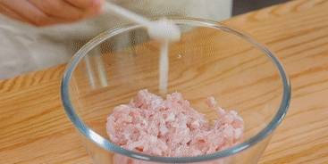 肉餡中加入醬油、鮮菇粉、蛋清和淀粉。醬油和鮮菇粉都是為瞭提味增鮮,可以根據寶寶的月齡和實際口味增減。加上蛋清和淀粉是為瞭讓口感更加滑嫩。