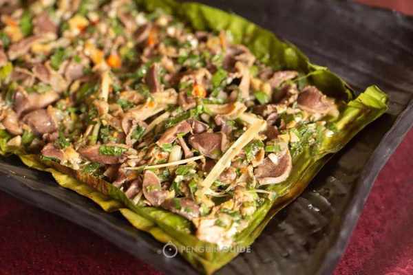 烤豬眼要整隻入口,齒頰到處,汁水爆漿,有經驗的食客要憑借豬眼表面的溫度,決定落齒的時機:早瞭容易燙傷口腔,晚瞭則無法體會香氣四溢的快感。