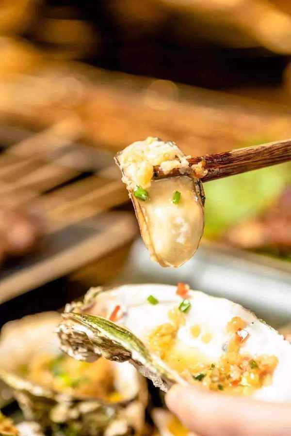 粵西人以烤生蠔為尊,手掌大的湛江生蠔,洗凈後閉殼開烤,上碳爐後外烤內煮,汁水收濃,不需要任何調味,自然味道豐沛。上桌之前把蠔殼撬開,加入金銀蒜和小米椒末點綴,再搭一瓶啤酒,這是身居南海之濱的莫大樂趣。