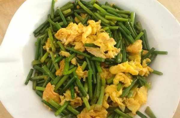 最後是唯一的1道素菜,蒜薹炒雞蛋。最簡單瞭,冬天的蒜薹有點老,口感遠不如春天鮮嫩。炒蒜薹的時候加一點熱水稍微煮一下,再加點蠔油翻炒均勻,這樣處理後蒜薹的口感好瞭很多,味道也更勝一籌。