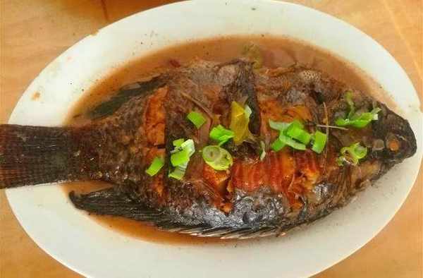燒牛腩期間做魚。把魚去鱗、挖腮、收拾幹凈,鍋燒熱倒油,魚兩面拍面粉煎一下,倒入料酒、生抽、老抽,下蔥、薑、白糖、辣椒,放適量水大火燒開小火慢燉30分鐘。煎魚一定要拍面粉,這樣煎魚不破皮、不腥氣,還很入味。