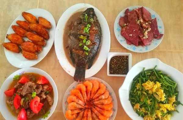 1小時做瞭6道菜,有魚有蝦還有肉,5葷1素,肉有點多,不過“傢中的肉食動物們”最開心。午餐:奧爾良烤雞翅、西紅柿燒牛腩、紅燒羅非魚、鹽水蝦、醬牛肉、蒜薹炒雞蛋。做這些菜看起來很費時,其實合理運用時間,1個小時就做好。