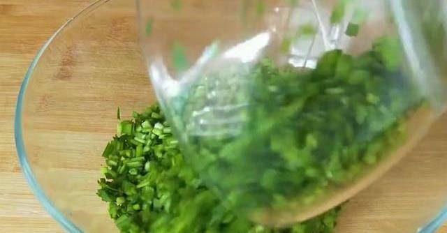 先和面300克的中金面粉加160毫升的涼水,攪拌成面絮狀之後揉成面團,然後把面團蓋上,醒面10分鐘。韭菜洗凈之後瀝幹水分,切碎之後放在盆中加適量的香油攪拌均勻,給韭菜的表皮裹上一層油膜,這樣在加鹽之後不會再出水。