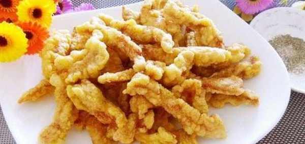 雞蛋隻取雞蛋清部分打散,加蒸過的面粉攪拌均勻,加高度白酒,醒發3-4個小時,充滿起泡,明顯發起時為準。豬肉裡脊肉、五花肉都可以,改刀切成長條狀,加食鹽、蔥薑末、料酒、花椒粉、醬油醃制。油溫五成,將醃好的肉條下入蛋糊中,慢炸一次炸熟炸透,控油撈出即可。剛出鍋可以直接吃,放涼後回鍋燉菜、涮火鍋、蒸著吃,微調更加。炸小雞