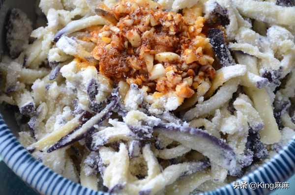 1,茄子切好條後,不要放鹽,隻放植物油,植物油用於鎖住茄子裡水份,這樣蒸出來的茄子才會更嫩更香。