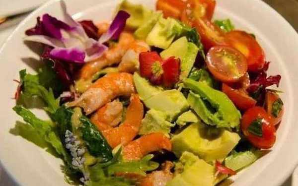 食材:蝦仁、牛油果、黃瓜、西紅柿、黑胡椒、鹽。