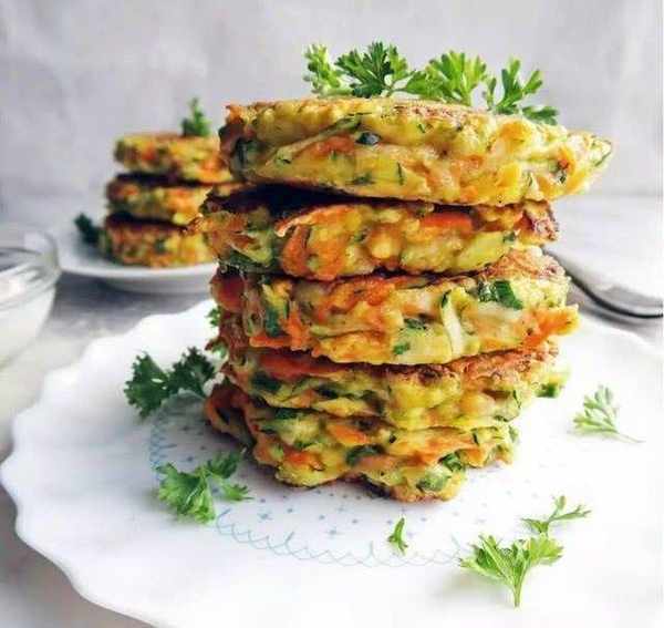 食材:西葫蘆、胡蘿卜、蔥、香芹、面粉、雞蛋、油、鹽、胡椒粉