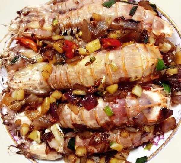 蒜香皮皮蝦:皮皮蝦清洗幹凈瀝幹水份,將蔥薑蒜辣椒幹以及洋蔥切丁備用,鍋內熱油,將洗凈瀝幹水分的皮皮蝦倒入油鍋中炸一分鐘左右,炸熟即可關火。將炸熟的皮皮蝦撈起備用,油鍋留適量的油熱鍋,將切好的配料放入油鍋中爆炒出香味隨即倒入炸好的皮皮蝦一起翻炒一會,出汁後中火慢慢翻炒,讓皮皮蝦吸汁入味,再大火收汁盛出裝盤即可!