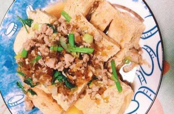 肉末豆腐:凍豆腐切塊,肉餡加生抽炒熟,放入凍豆腐,加入適量生抽,小火燉二十分鐘,中途可以加水,千萬不要燒幹鍋,裝盤,撒蔥花和香菜!