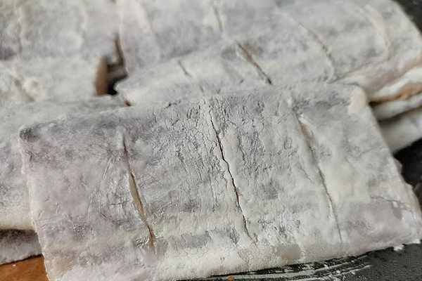 3:炸帶魚可以拍粉,可以掛糊。但是燒帶魚,就必須要拍粉了,不要太多,薄薄一層就可以。