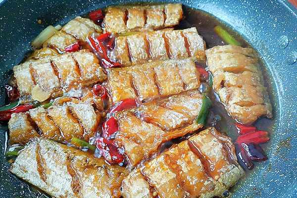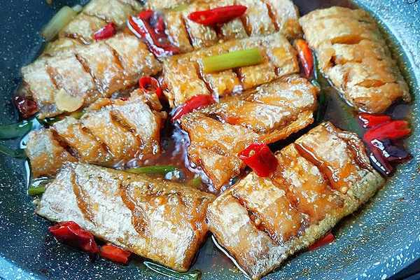 在我們家,吃得最多的還屬帶魚!帶魚經過醃制,油炸,然後再燉一下,醬汁滲透進魚肉裏,變得很香很入味,我家"神獸"喜歡的不得了。