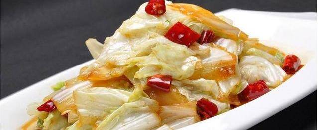 最後一道是酸辣白菜,我們要先準備白菜、紅辣椒、青辣椒、大蔥、薑、鹽、味精、豌豆淀粉、白醋和香油。第一步要將幹辣椒切塊、蔥切段、薑切成細絲,然後把青紅辣椒去蒂、籽,切成片;第二步,把白菜去葉,隻留頸部,然後在鍋裡加入少許的油燒熱;第三步,依次加入蔥花、薑絲、幹辣椒和青紅辣椒片,爆香後加入白醋,然後迅速將切好的白菜放入鍋內;最後,加入鹽和味精翻炒,勾芡,再加入少許的香油,出鍋即成。