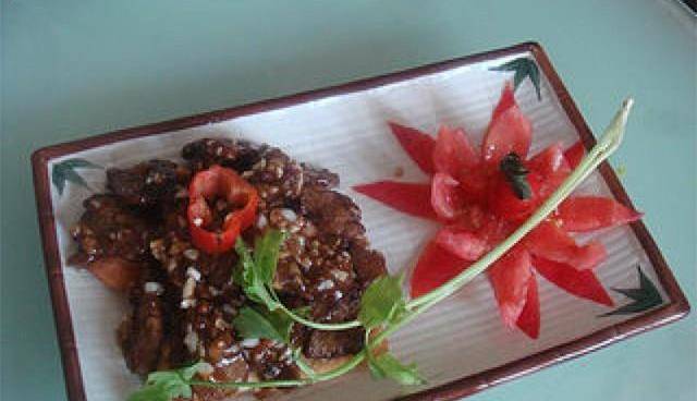 南煎肝是福建省傳統的地方名菜,屬於閩菜系。豬肝要切得比較薄,因為這道菜豬肝在制作的過程中因為要保持新嫩的口感,在鍋中停留的時間就不能長,所以要讓豬肝保持鮮嫩口感的同時又要充分熟透,切得比較薄是關鍵之一。