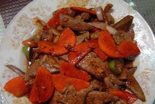 豬肝、洋蔥、胡蘿卜、青椒、蒜頭、鹽、生抽、老抽、糖、醋、地瓜粉、老酒。