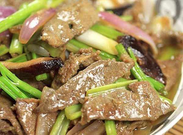 5、起油鍋,下豬肝快速翻炒至變色,盛起待用。
